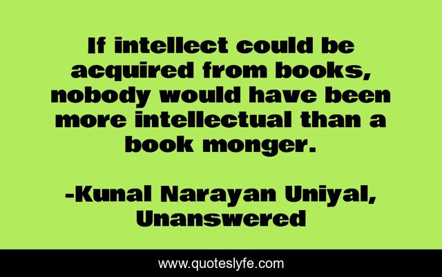 This page presents the quote "If intellect could be acquired from books, nobody would have been more intellectual than a book monger.". Author of this quote is Kunal Narayan Uniyal, Unanswered. .