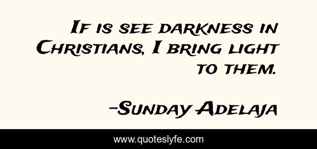 This page presents the quote "If is see darkness in Christians, I bring light to them.". Author of this quote is Sunday Adelaja. This quote is about light, darkness, christians,.