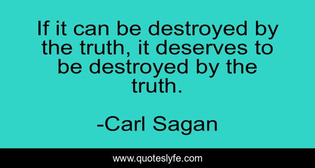 This page presents the quote "If it can be destroyed by the truth, it deserves to be destroyed by the truth.". Author of this quote is Carl Sagan. This quote is about enthusiasm, inspirational, truth, destruction,.