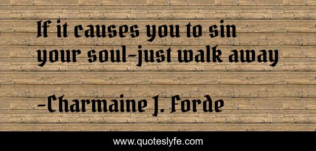 This page presents the quote "If it causes you to sin your soul-just walk away". Author of this quote is Charmaine J. Forde. This quote is about sin, soul, walk,.