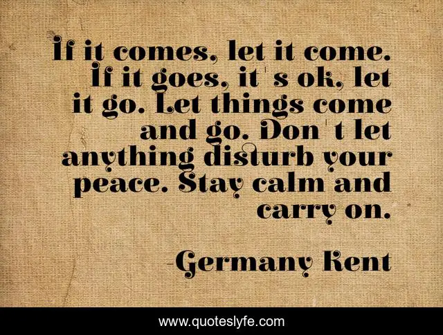 If it comes, let it come. If it goes, it's ok, let it go. Let things come and go. Don't let anything disturb your peace. Stay calm and carry on.