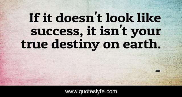 This page presents the quote "If it doesn't look like success, it isn't your true destiny on earth.". Author of this quote is . This quote is about edmond-mbiaka, your-destiny-in-life, destiny, success, true-destiny-on-earth,.