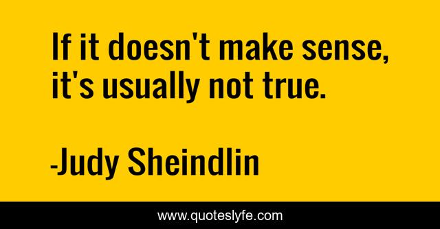 This page presents the quote "If it doesn't make sense, it's usually not true.". Author of this quote is Judy Sheindlin. This quote is about humor, judge-judy, logic,.