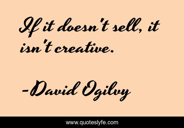 This page presents the quote "If it doesn't sell, it isn't creative.". Author of this quote is David Ogilvy. This quote is about sell, creative,.