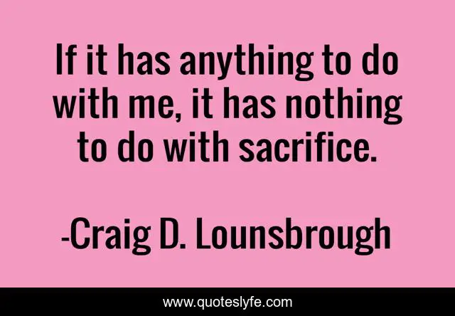This page presents the quote "If it has anything to do with me, it has nothing to do with sacrifice.". Author of this quote is Craig D. Lounsbrough. This quote is about narcissism, selfish, egocentric, give, giving, hoarding, sacrifice, greedy, sacrificial,.
