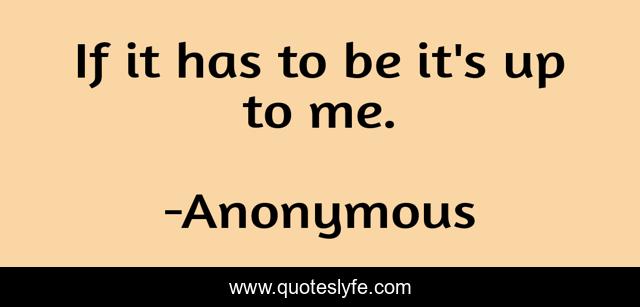 This page presents the quote "If it has to be it's up to me.". Author of this quote is Anonymous. This quote is about self-motivation, life, goals, motivation, inspiration,.