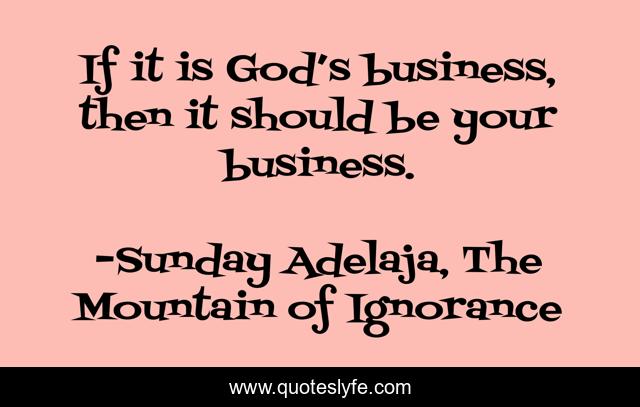 This page presents the quote "If it is God’s business, then it should be your business.". Author of this quote is Sunday Adelaja, The Mountain of Ignorance. This quote is about mountain, life, god-s-business, darkness, power, danger, god, people, ignorance,.