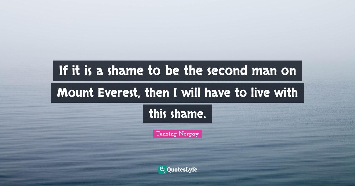 This page presents the quote "If it is a shame to be the second man on Mount Everest, then I will have to live with this shame.". Author of this quote is Tenzing Norgay. This quote is about shame, climbing mount everest, men, mount everest,.