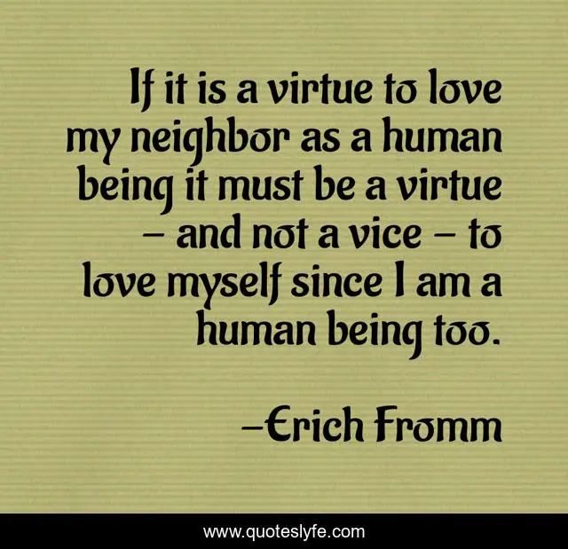 This page presents the quote "If it is a virtue to love my neighbor as a human being it must be a virtue - and not a vice - to love myself since I am a human being too.". Author of this quote is Erich Fromm. .