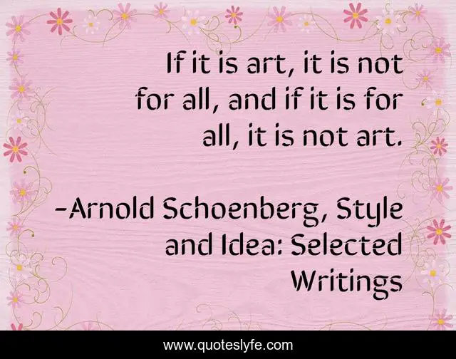 "Arnold Schoenberg, Style and Idea: Selected Writings Quotes." Quoteslyfe.com, 2025. Fri. 05 Dec. 2025. <https://www.quoteslyfe.com/quote/If-it-is-art-it-is-not-65687>.