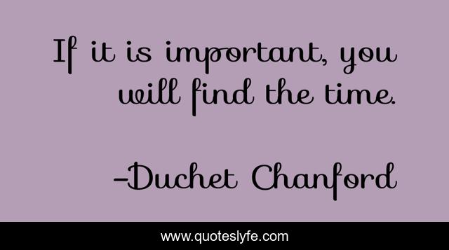 This page presents the quote "If it is important, you will find the time.". Author of this quote is Duchet Chanford. This quote is about important, chanford, duchet, success, time,.