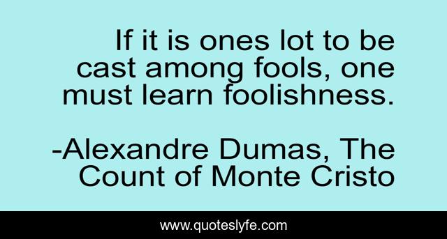 This page presents the quote "If it is ones lot to be cast among fools, one must learn foolishness.". Author of this quote is Alexandre Dumas, The Count of Monte Cristo. This quote is about fool, foolishness, lot, learn,.
