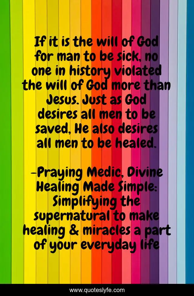 "Praying Medic, Divine Healing Made Simple: Simplifying the supernatural to make healing & miracles a part of your everyday life Quotes." Quoteslyfe.com, 2025. Sun. 07 Dec. 2025. <https://www.quoteslyfe.com/quote/If-it-is-the-will-of-God-148190>.