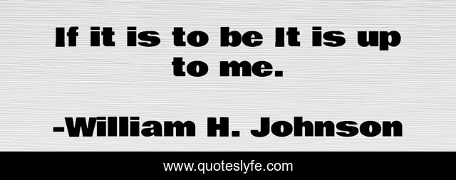 This page presents the quote "If it is to be It is up to me.". Author of this quote is William H. Johnson. .