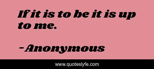 This page presents the quote "If it is to be it is up to me.". Author of this quote is Anonymous. This quote is about self, reliance,.