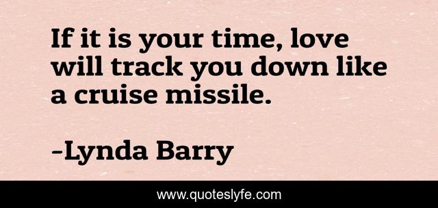 This page presents the quote "If it is your time, love will track you down like a cruise missile.". Author of this quote is Lynda Barry. This quote is about down, time,.