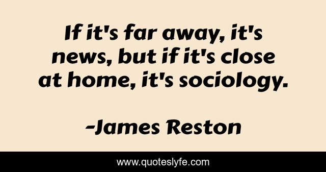 This page presents the quote "If it's far away, it's news, but if it's close at home, it's sociology.". Author of this quote is James Reston. This quote is about news, sociology, far away,.