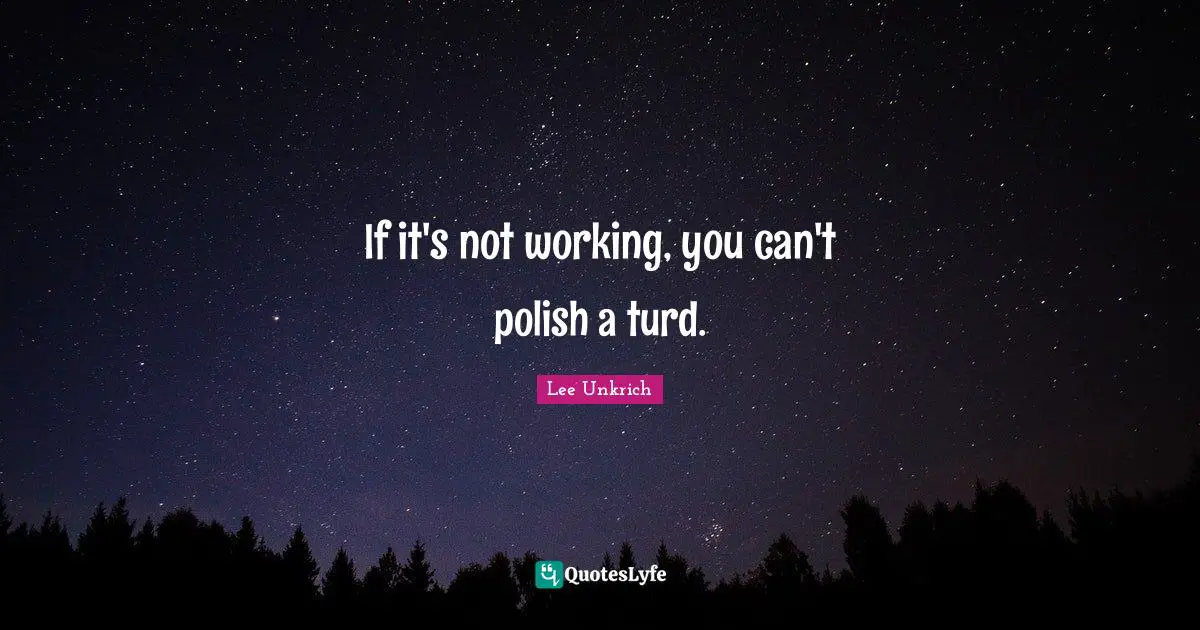 This page presents the quote "If it's not working, you can't polish a turd.". Author of this quote is Lee Unkrich. This quote is about turds, polish, ifs,.