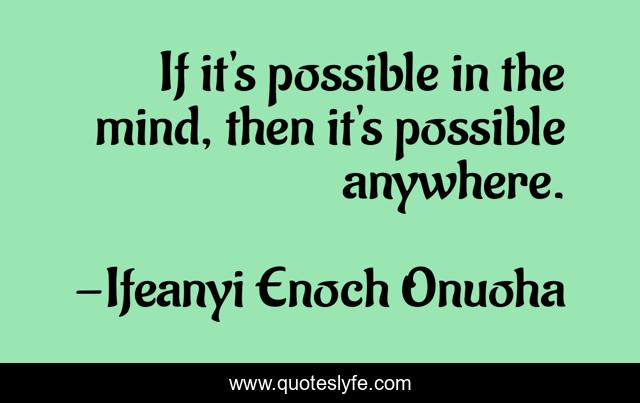"Ifeanyi Enoch Onuoha Quotes." Quoteslyfe.com, 2025. Fri. 05 Dec. 2025. <https://www.quoteslyfe.com/quote/If-it-s-possible-in-the-mind-87625>.