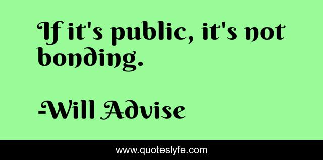 This page presents the quote "If it's public, it's not bonding.". Author of this quote is Will Advise. This quote is about relationships, publicity, psychology, behaviour, bonding, friendship, public, affection,.