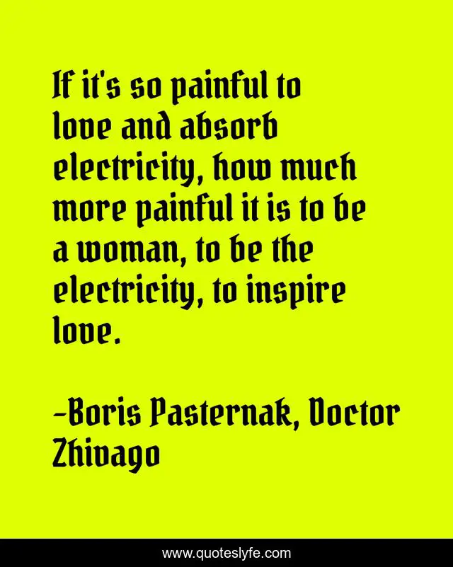 This page presents the quote "If it's so painful to love and absorb electricity, how much more painful it is to be a woman, to be the electricity, to inspire love.". Author of this quote is Boris Pasternak, Doctor Zhivago. .