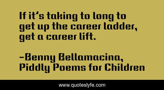 This page presents the quote "If it’s taking to long to get up the career ladder, get a career lift.". Author of this quote is Benny Bellamacina, Piddly Poems for Children. This quote is about career, philosophy, humor, humour, wisdom,.