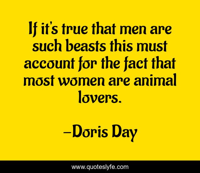 This page presents the quote "If it's true that men are such beasts this must account for the fact that most women are animal lovers.". Author of this quote is Doris Day. .