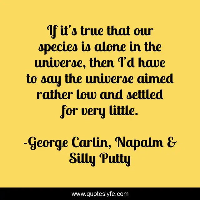 This page presents the quote "If it’s true that our species is alone in the universe, then I’d have to say the universe aimed rather low and settled for very little.". Author of this quote is George Carlin, Napalm & Silly Putty. This quote is about perspective, humor, philosophie, humour, humanity,.