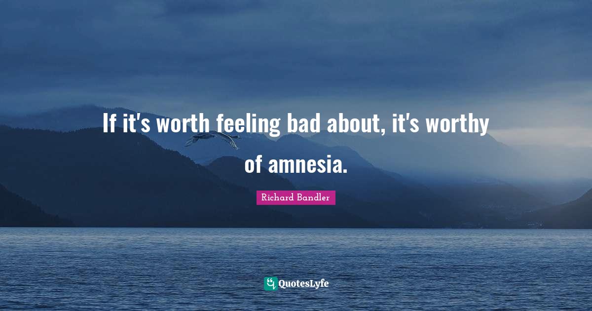 "Richard Bandler Quotes." Quoteslyfe.com, 2026. Tue. 13 Jan. 2026. <https://www.quoteslyfe.com/quote/If-it-s-worth-feeling-bad-about-992612>.