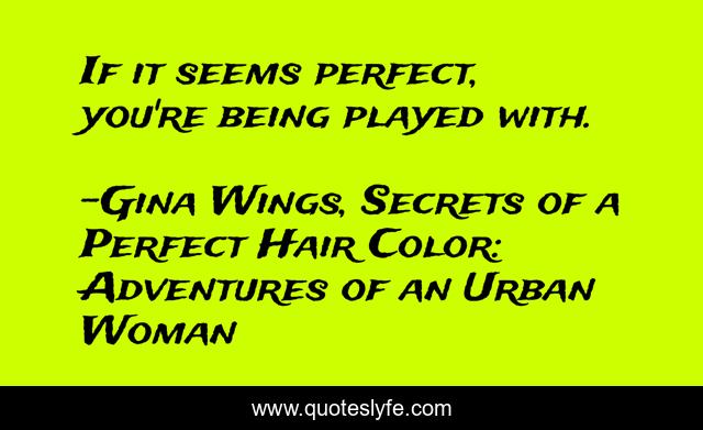 This page presents the quote "If it seems perfect, you're being played with.". Author of this quote is Gina Wings, Secrets of a Perfect Hair Color: Adventures of an Urban Woman. This quote is about affairs, game, love, perfection, affection,.