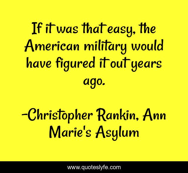 "Christopher Rankin, Ann Marie's Asylum Quotes." Quoteslyfe.com, 2025. Fri. 05 Dec. 2025. <https://www.quoteslyfe.com/quote/If-it-was-that-easy-the-American-134023>.