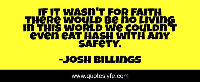 This page presents the quote "If it wasn't for faith there would be no living in this world we couldn't even eat hash with any safety.". Author of this quote is Josh Billings. This quote is about faith, unity,.