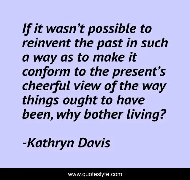 This page presents the quote "If it wasn’t possible to reinvent the past in such a way as to make it conform to the present’s cheerful view of the way things ought to have been, why bother living?". Author of this quote is Kathryn Davis. This quote is about past, living, present,.