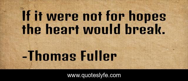 This page presents the quote "If it were not for hopes the heart would break.". Author of this quote is Thomas Fuller. .