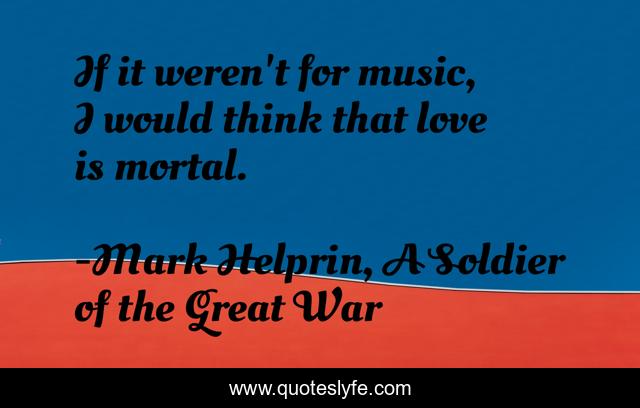 This page presents the quote "If it weren't for music, I would think that love is mortal.". Author of this quote is Mark Helprin, A Soldier of the Great War. This quote is about love, music, affection, power-of-music,.