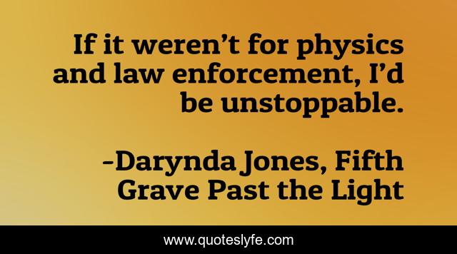 This page presents the quote "If it weren’t for physics and law enforcement, I’d be unstoppable.". Author of this quote is Darynda Jones, Fifth Grave Past the Light. This quote is about funny, comedy, humour,.