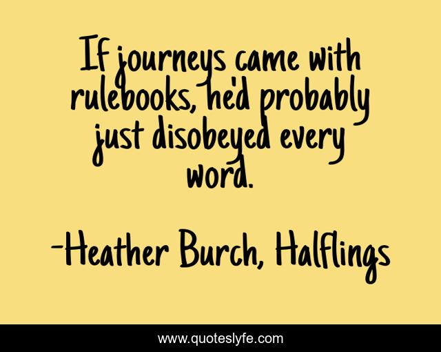 "Heather Burch, Halflings Quotes." Quoteslyfe.com, 2025. Fri. 05 Dec. 2025. <https://www.quoteslyfe.com/quote/If-journeys-came-with-rulebooks-he-d-219493>.