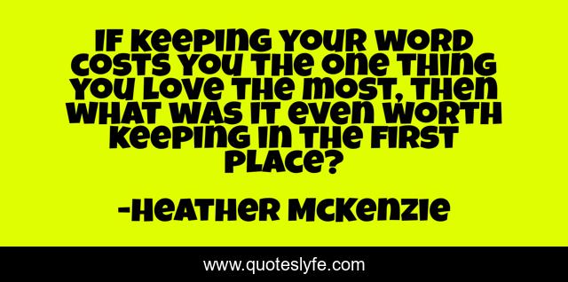 This page presents the quote "If keeping your word costs you the one thing you love the most, then what was it even worth keeping in the first place?". Author of this quote is Heather McKenzie. This quote is about love, promise, honor, affection,.