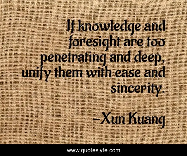 This page presents the quote "If knowledge and foresight are too penetrating and deep, unify them with ease and sincerity.". Author of this quote is Xun Kuang. This quote is about ease, sincerity, deep,.