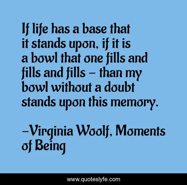 This page presents the quote "If life has a base that it stands upon, if it is a bowl that one fills and fills and fills - than my bowl without a doubt stands upon this memory.". Author of this quote is Virginia Woolf, Moments of Being. This quote is about autobiography, life, memory,.