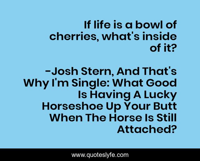 "Josh Stern, And That's Why I'm Single: What Good Is Having A Lucky Horseshoe Up Your Butt When The Horse Is Still Attached? Quotes." Quoteslyfe.com, 2025. Mon. 08 Dec. 2025. <https://www.quoteslyfe.com/quote/If-life-is-a-bowl-of-cherries-116440>.