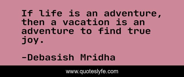 This page presents the quote "If life is an adventure, then a vacation is an adventure to find true joy.". Author of this quote is Debasish Mridha. This quote is about miraboli, life-is-an-adventure, vacation-is-an-adventure, find-true-joy, oscar-wilde, philosophy, debasish-mridha, quotes, debasish-mridha-md,.