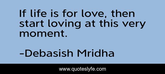 This page presents the quote "If life is for love, then start loving at this very moment.". Author of this quote is Debasish Mridha. This quote is about life-motto, philosophy, debasish-mridha, importance-of-love, quotes, start-loving, debasish-mridha-md, inspirational, enthusiasm,.