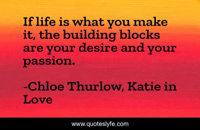 This page presents the quote "If life is what you make it, the building blocks are your desire and your passion.". Author of this quote is Chloe Thurlow, Katie in Love. This quote is about life-experience, life-lessons,.