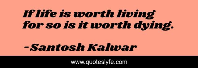 This page presents the quote "If life is worth living for so is it worth dying.". Author of this quote is Santosh Kalwar. This quote is about living, life, death,.