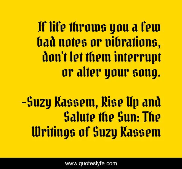 If life throws you a few bad notes or vibrations, don't let them interrupt or alter your song.
