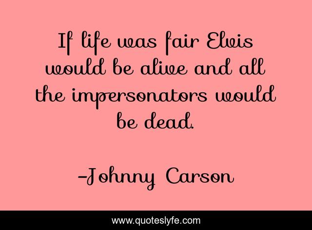 This page presents the quote "If life was fair Elvis would be alive and all the impersonators would be dead.". Author of this quote is Johnny Carson. This quote is about life, death,.