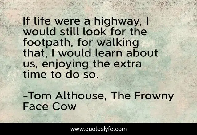 "Tom Althouse, The Frowny Face Cow Quotes." Quoteslyfe.com, 2025. Mon. 08 Dec. 2025. <https://www.quoteslyfe.com/quote/If-life-were-a-highway-I-would-155813>.