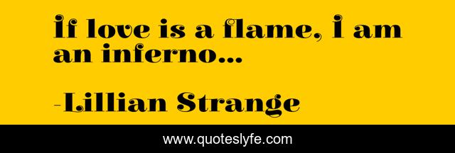 This page presents the quote "If love is a flame, I am an inferno...". Author of this quote is Lillian Strange. This quote is about love, fire, strange, inspirational, enthusiasm, inferno, affection,.
