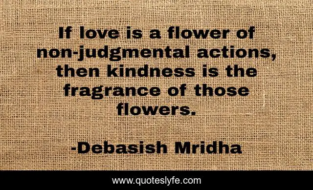 This page presents the quote "If love is a flower of non-judgmental actions, then kindness is the fragrance of those flowers.". Author of this quote is Debasish Mridha. This quote is about love-is-a-flower, non-judgmental-actions, philosophy, debasish-mridha, quotes, debasish-mridha-md, inspirational, enthusiasm, kindness,.
